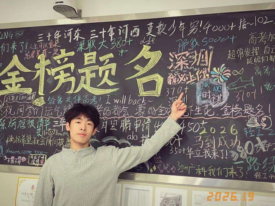三年級時,林越被選拔進入年級前200名組成的“英才班”。在那里,他遇到了全新的氛圍:“身邊的人都是真想學習的,目標都是‘3+證書’考試,老師講課也更聚焦考點。”今年2月,他以403分的成績交出了一份令人驚喜的答卷。