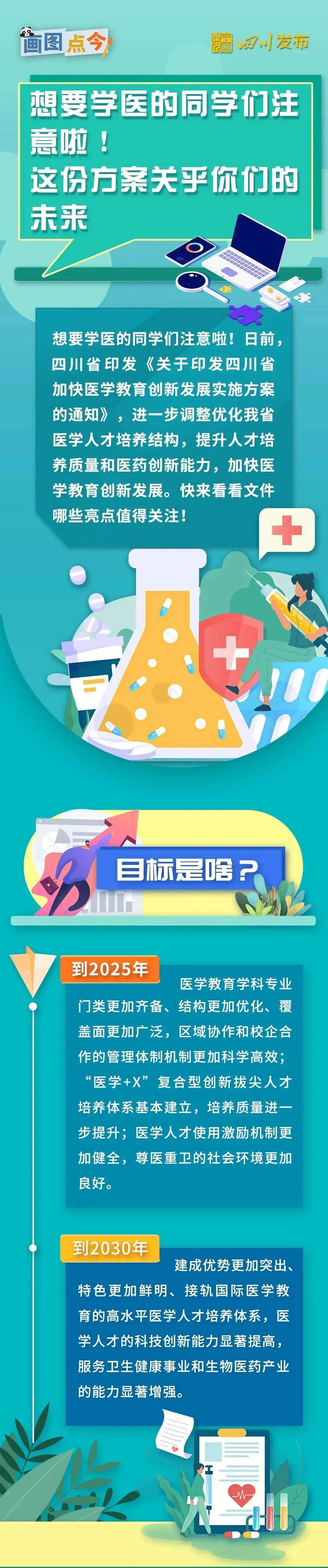 日前,四川省印發《關于印發四川省加快醫學教育創新發展實施方案的通知》。明確了提升醫學專業學歷教育層次、提高入口生源質量。