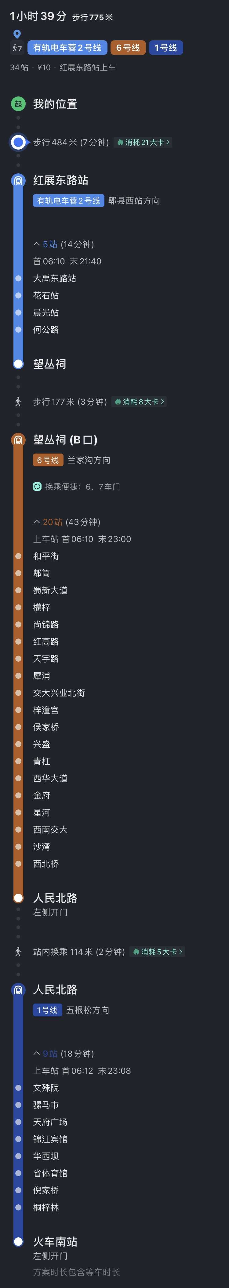 (1號線)成都南站開往人民南路,換乘6號線開往望叢祠下車B口出站,步行約200米在本站換乘有軌電車2號線;在紅展東路站下車步行約500米到校;全程1小時40分鐘。